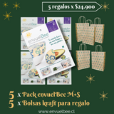 5 envuelBee M+S 🐝+ 5 bolsistas kraft de regalo + 5 stickers cierre.