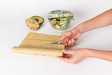 Elaborado en tela 100% algodón impregnada con cera de abejas, resina de pino y aceite, Envuelbee se utiliza para proteger y conservar alimentos, ya sea directamente sobre los alimentos o sobre platos y bowls.