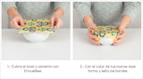 Elaborado en tela 100% algodón impregnada con cera de abejas, resina de pino y aceite, Envuelbee se utiliza para proteger y conservar alimentos, ya sea directamente sobre los alimentos o sobre platos y bowls.