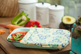 Contiene 1 EnvuelBee tamaño L (33x33), perfecto para envolver una hogaza de pan, una fuente con ese postre que te encanta, una exquisita ensalada y dejarla lista para llevarla a la mesa!! y 1 Envuelbee Small (18x18) perfecto para esa mitad de palta, ese frasco que perdiste la tapa, la mitad de un plátano y todo lo que no quieras que se oxide y tengas que tirar.